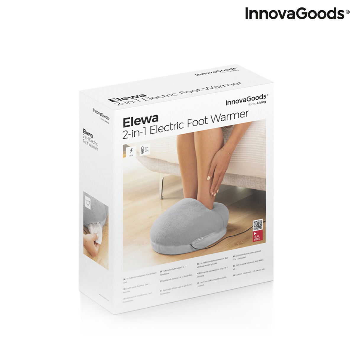 Een originele 2-in-1 elektrische voetenwarmer, zeer veelzijdig en aanpasbaar dankzij de afneembare vormgeving en de USB-werking. Perfect om het koude winterweer te bestrijden en een aangename en troostende warmte aan je voeten te voelen. Hij kan overal gebruikt worden waar een USB-verbinding in de buurt is (laptop, powerbank, USB-adapter, etc.). De basis is antislip en afneembaar voor gemakkelijk gebruik op de vloer, in bed, op de bank, tijdens telewerken, etc. Bovendien heeft hij, om het schoonmaken te vergemakkelijken, een ritssluiting om de elektrische weerstand en de USB-kabel te verwijderen. Hij warmt snel op en bereikt een maximum temperatuur van ca. 60 ºC. Deze voetenwarmer is heel zacht, donzig en comfortabel, en geeft een warm gevoel van rust, ontspanning en welzijn. Hij kan desgewenst ook gebruikt worden zonder elektrisch verwarmingselement en zonder USB-verbindingskabel (als voetenwarmer zonder elektrische functie).