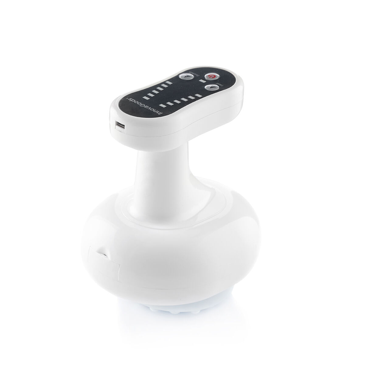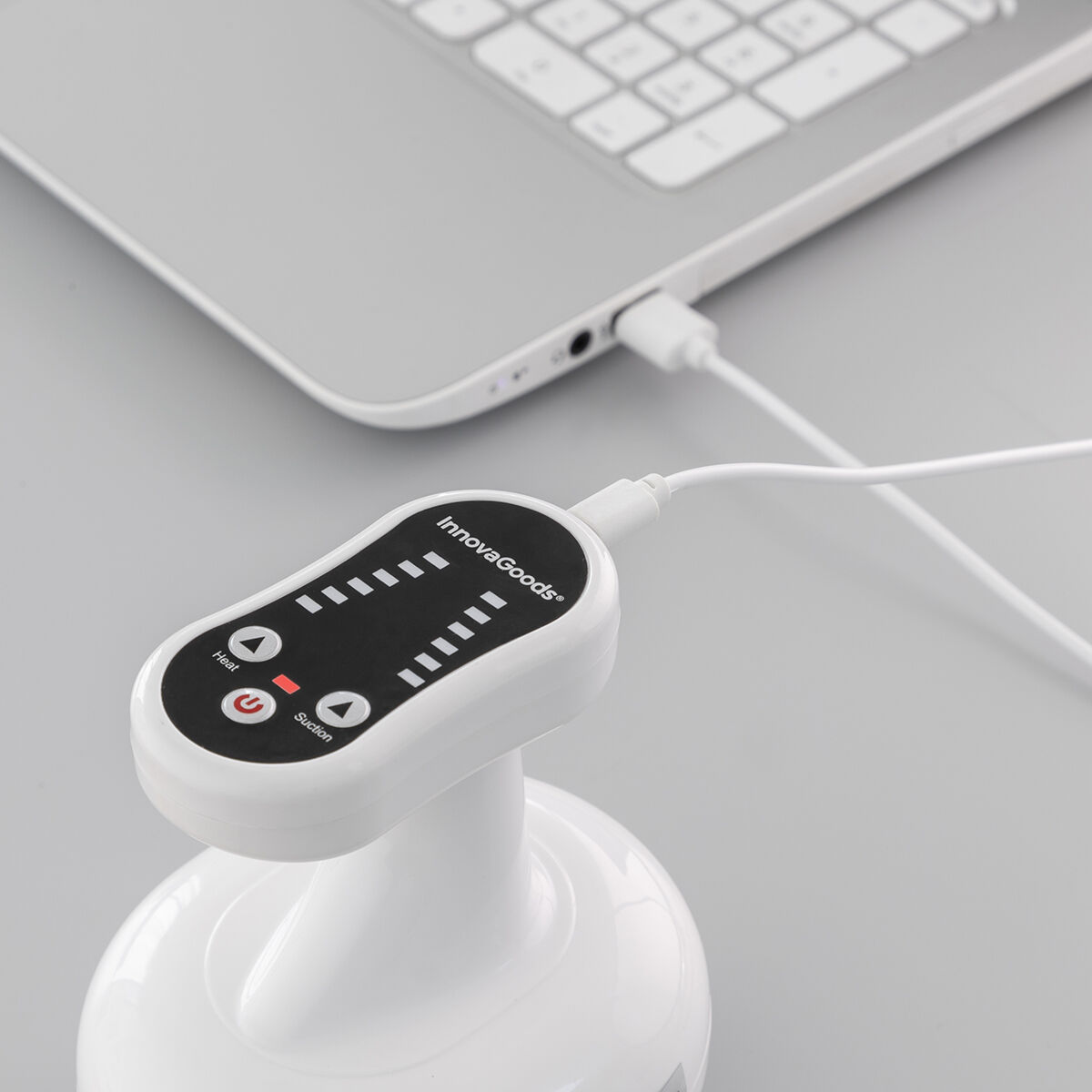 Een anti-cellulitismassager die gebruik maakt van zuiging en warmte en zeer effectief is in het bestrijden van cellulitis en slappe huid. Hij werkt door middel van de vacuümtherapie-techniek, met warmte-effect voor het stimuleren van een beter resultaat. Zijn ergonomische, draagbare en oplaadbare ontwerp maken hem eenvoudig te gebruiken, omdat hij zich eenvoudig aanpast aan elk deel van het lichaam waarop hij wordt gebruikt en hij is veel handiger omdat hij geen stekkers of kabels heeft. U glijdt er eenvoudigweg mee over de huid in langzame en doorgaande bewegingen. Hij heeft verschillende zuig- en warmte-instellingen met lichtindicatoren en automatische uitschakeling. Ideaal voor benen, bilspieren, taille, buik en armen. Hij dient te worden gebruikt met oliën of lotions (niet inbegrepen) om het eenvoudiger te maken ermee over de huid te glijden. Hij is eenvoudig schoon te maken en bevat een extra lange USB naar micro USB-kabel, klemmen, doppen en wasbare vervangende filters die voorkomen dat lotions en oliën in het apparaat komen, en voorkomen daarmee mogelijke schade.
