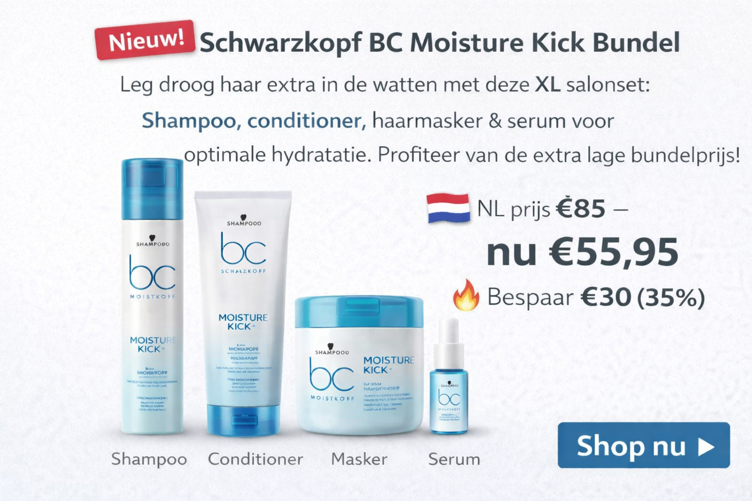 Geef droog en futloos haar een intensieve hydratatieboost met deze complete Schwarzkopf BC Moisture Kick bundel.