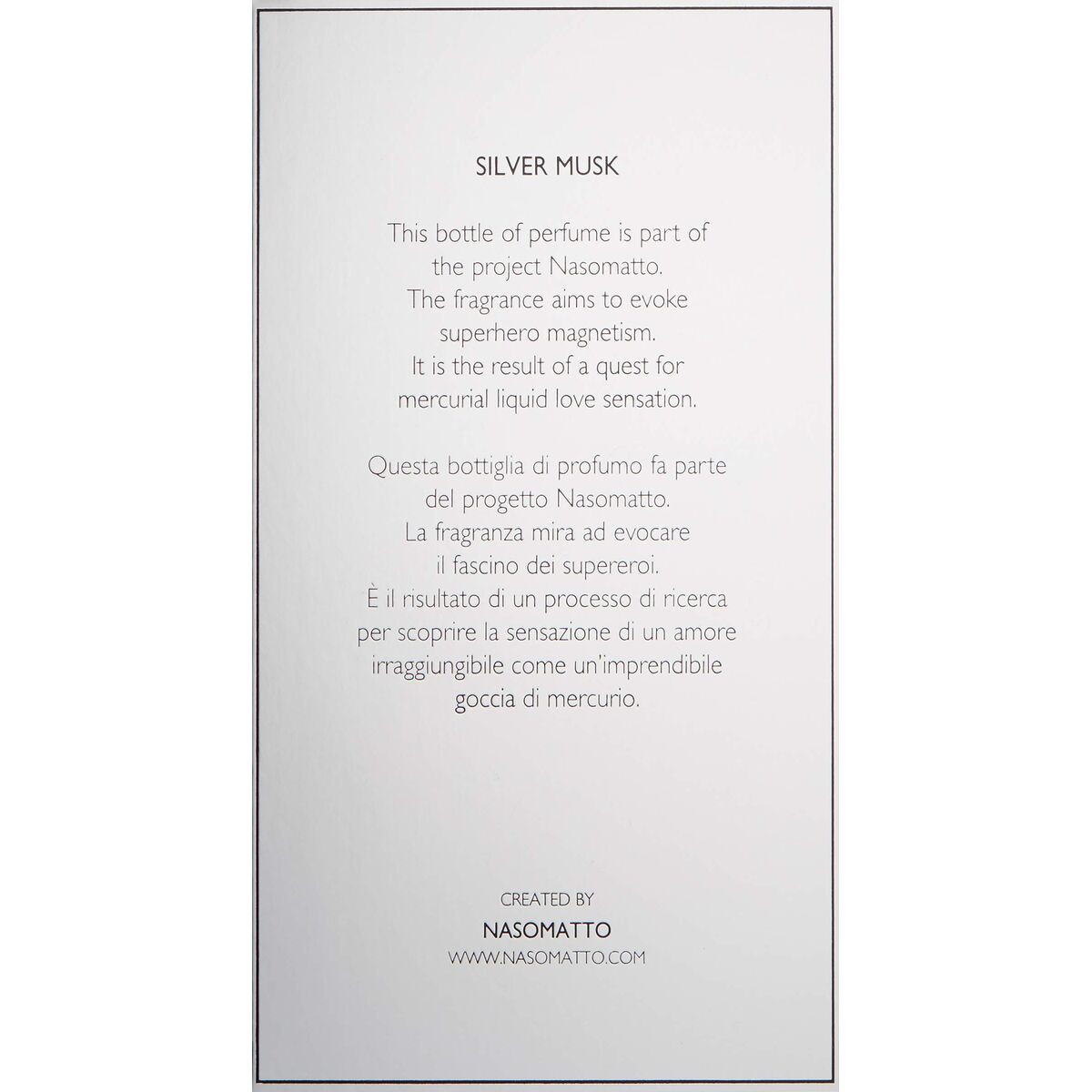 Laat je verrassen door het 100% originele Uniseks Parfum Nasomatto SILVER MUSK 30 ml en geef je vrouwelijkheid een boost dankzij dit exclusieve vrouwenparfum met een unieke en persoonlijke geur. Ontdek de 100% originele Nasomatto producten!